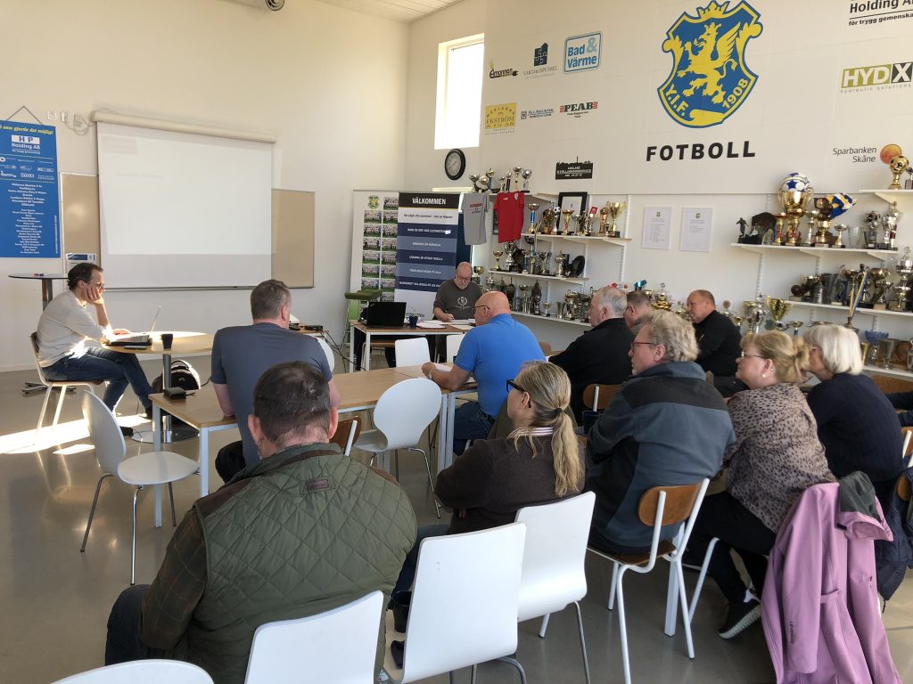 17 medlemmar, representerande 14 lokaler (av 28) mötte upp på YIF:s paviljong på Ystad Idrottsplats för föreningens andra ”riktiga” årsstämma. Årsstämman ska ju följa ett förutbestämt format som återfinns i våra stadgar. Samtidigt är ju årsstämman ett bra tillfälle att träffa de övriga medlemmarna i föreningen!