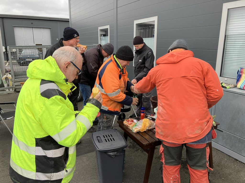 Föreningen hade arrangerat en välförtjänt arbetspaus med korvgrillning och fika. Ett givet tillfälle för lite garageskvaller.